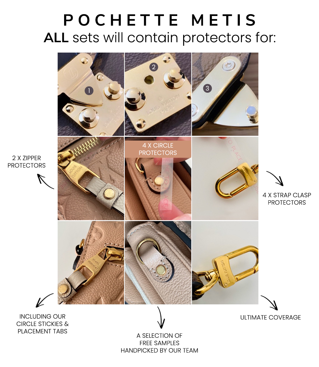 • Thirteen Clear Protectors: Custom-fit to shield your handbag’s hardware from everyday wear.