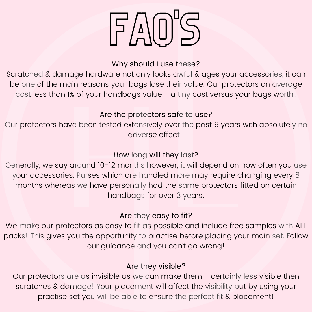 Think of them like phone screen protectors, but for your handbag’s hardware. They are made specifically to preserve the beauty and value of your designer bags.