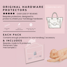 They are thin, durable, and fully removable, ensuring your hardware stays pristine without altering the look of your bag.